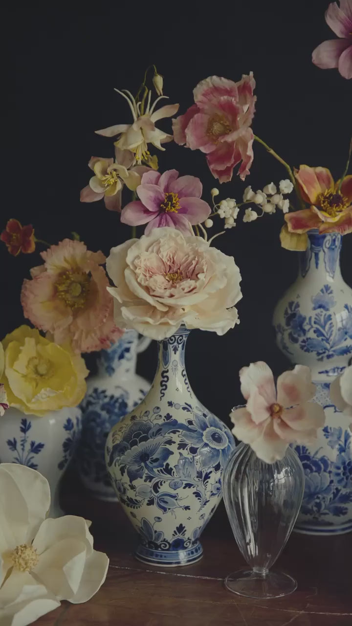 Natasja Sadi joined Grand Dessert - The history of the dessert exposition at Kunstmuseum The Hague. Arranged in rare delftware vases, her sugar flowers make a significant statement. From the traditional Dutch ‘vlaflip’ to a royal dessert buffet, from baklava to a Charlotte Russe, from custard and ice cream to delicious gateaux: this winter the history and enjoyment of desserts in Europe will be the focus of a new exhibition at Kunstmuseum The Hague which opened on 23 November 2024. Author and TV personality Janny van der Heijden is the guest curator.
